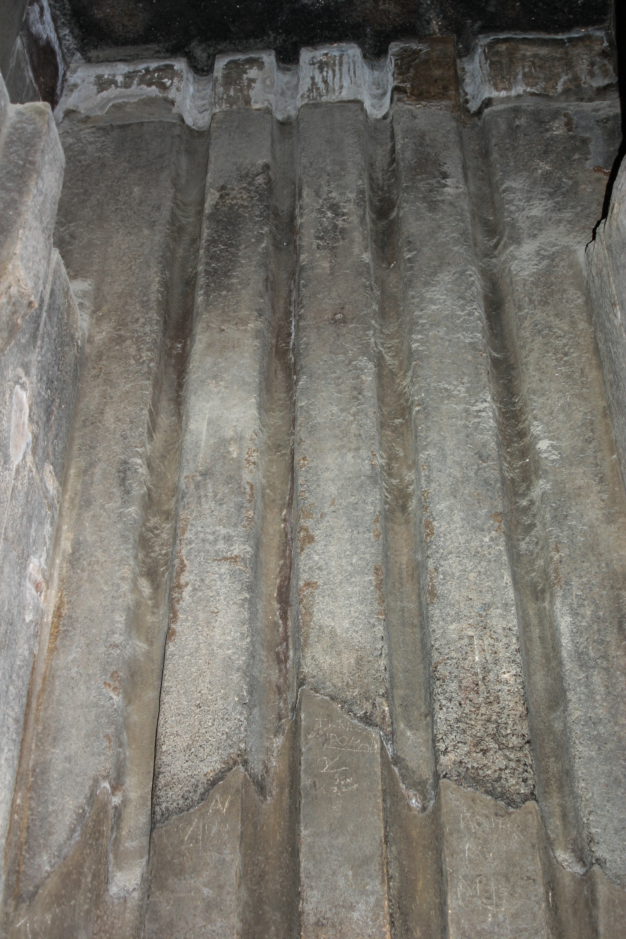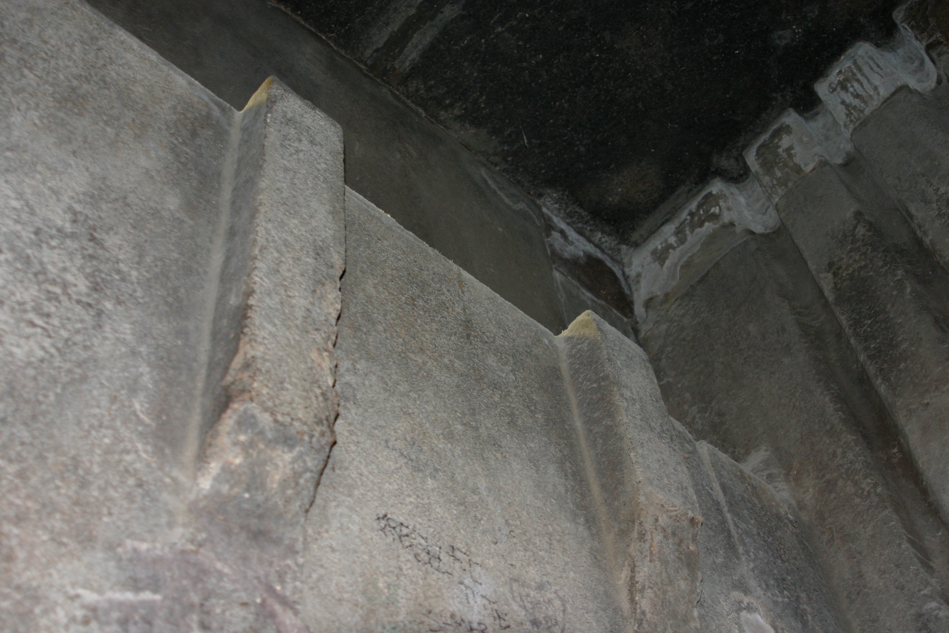 Raisonnons logiquement : pourquoi les bâtisseurs auraient-ils compliqué le travail en gérant l’élévation de faces renfoncés, avec des blocs de tailles différentes, pour venir ensuite y placer des blocs de parement « plats » pour combler ce creusement ? Dans un édifice aussi soigné, où tout a été soigneusement anticipé, il y a nécessairement une raison à cette particularité plus que contraignante, et c’est peut-être celle découverte par André Pochan.