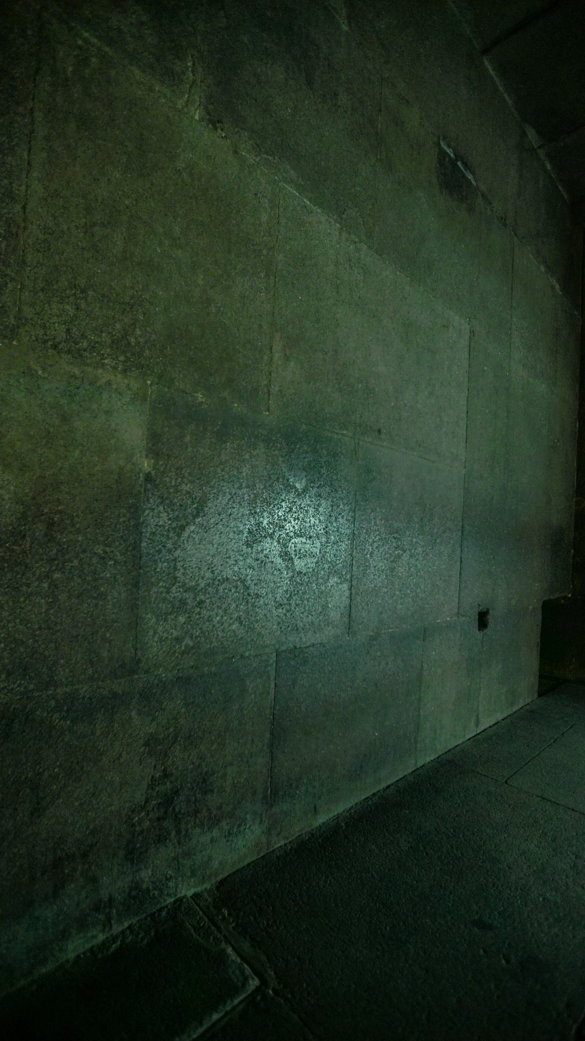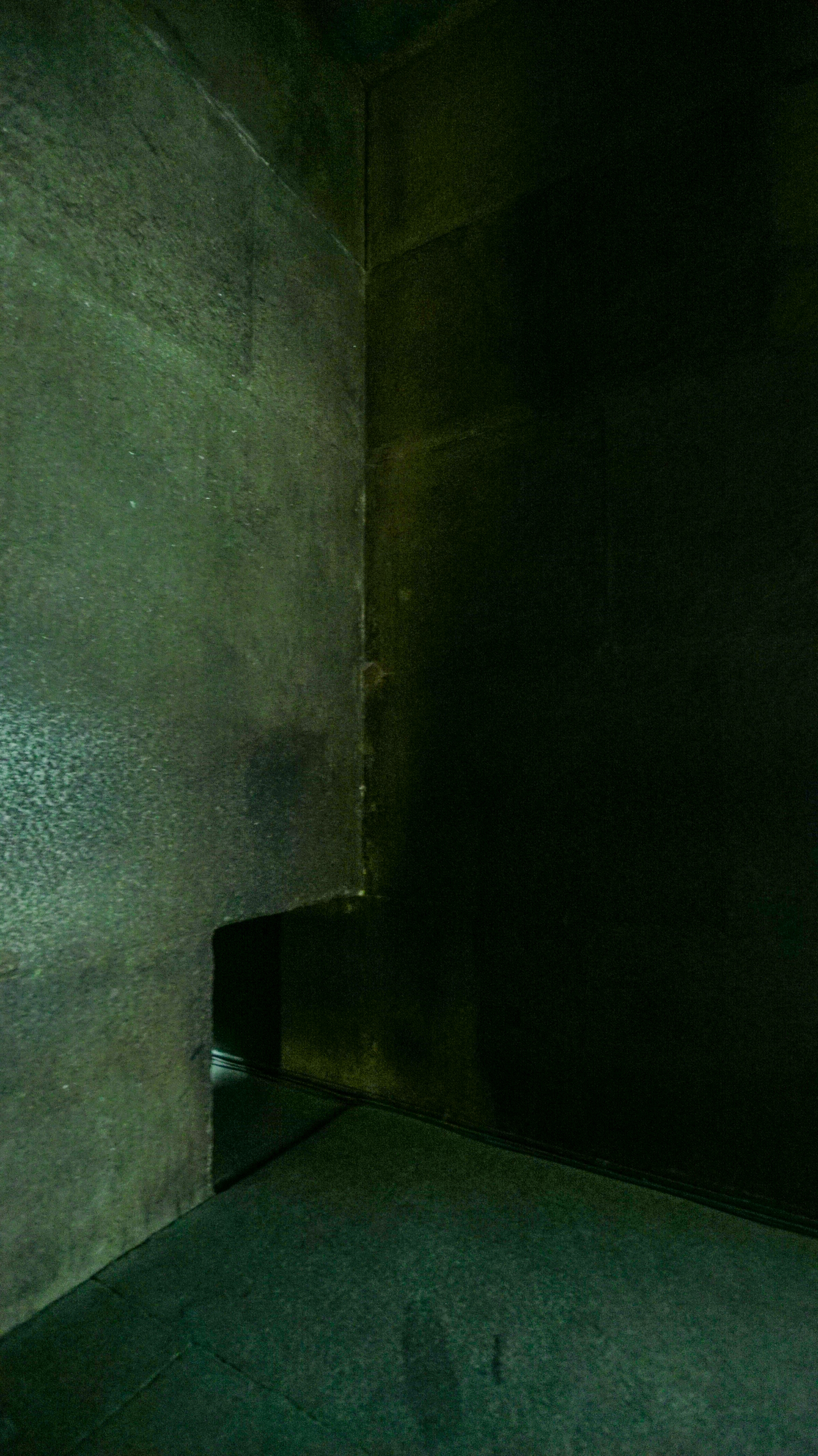 Si cette galerie n’a pas d’autre fonction que décorative, sa disproportion ainsi que sa technicité interrogent. Chaque immense bloc est très précisément agencé avec son voisin et les forces de poussée des différentes assises parfaitement gérées. Certains blocs au bas de cette grande galerie présentent des formes ingénieuses qui leur permettent une imbrication très précise jusque sous le plafond en encorbellement. Je ne peux malheureusement pas vous en montrer d’images car je n’en possède pas à l’heure où j’écris ces lignes, mais seulement vous inviter à retenir ceci pour y faire attention le jour où vous irez la visiter : c’est un endroit de passage où l’on ne fait pas vraiment attention, souvent poussé par les gens qui vous suivent vers le chemin de la sortie. Dans une visite normale, vous ne pouvez filmer avec votre smartphone que dans la chambre haute – quoique cela dépende des jours – et vous vous faites immédiatement repérer si vous utilisez le flash. Ils sont à quelques mètres de hauteur et je les ai vus de manière fortuite, car une jeune femme a fait un malaise juste devant nous, ce qui nous a bloqués une dizaine de minutes le temps qu’elle reprenne ses esprits…