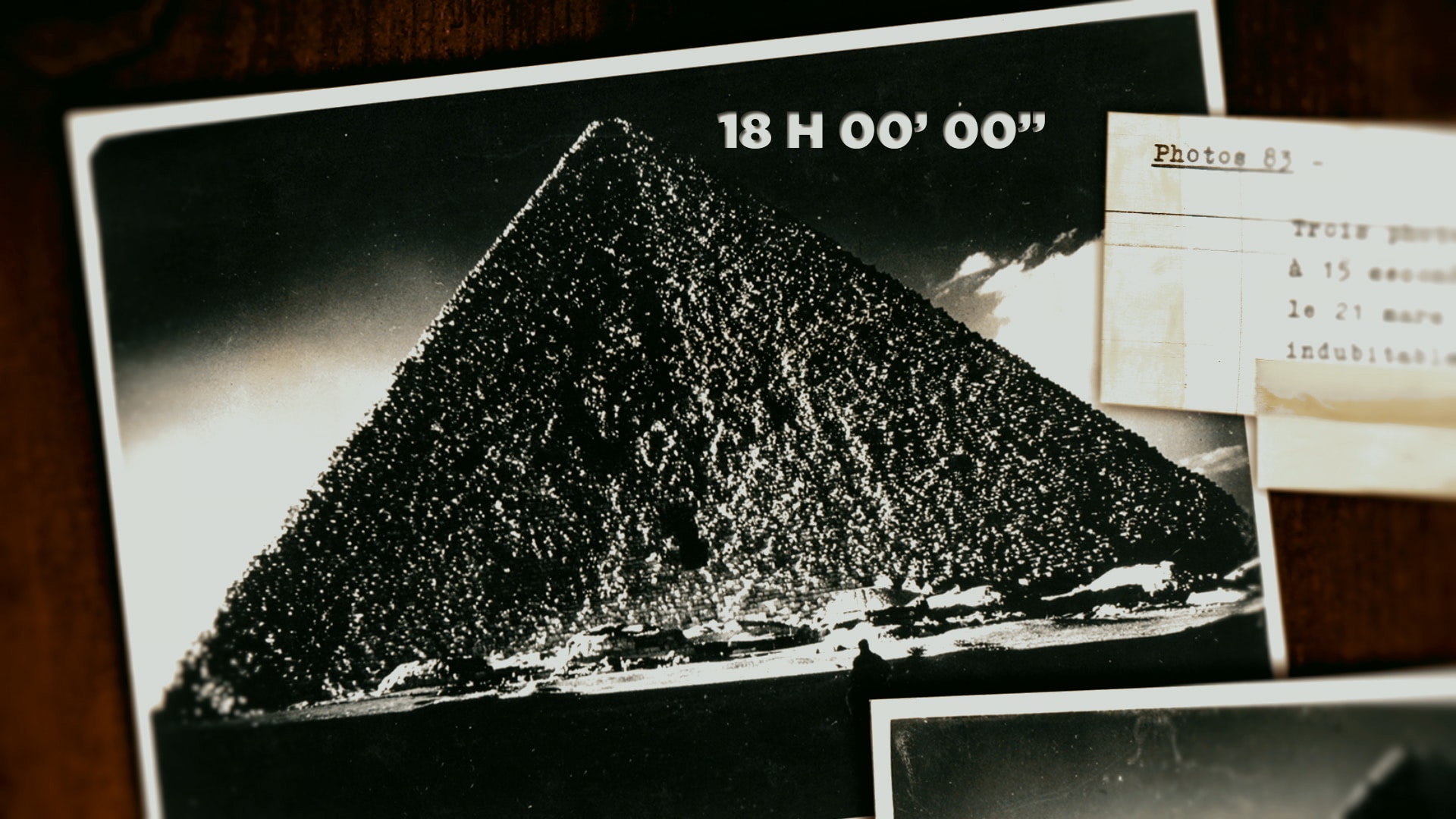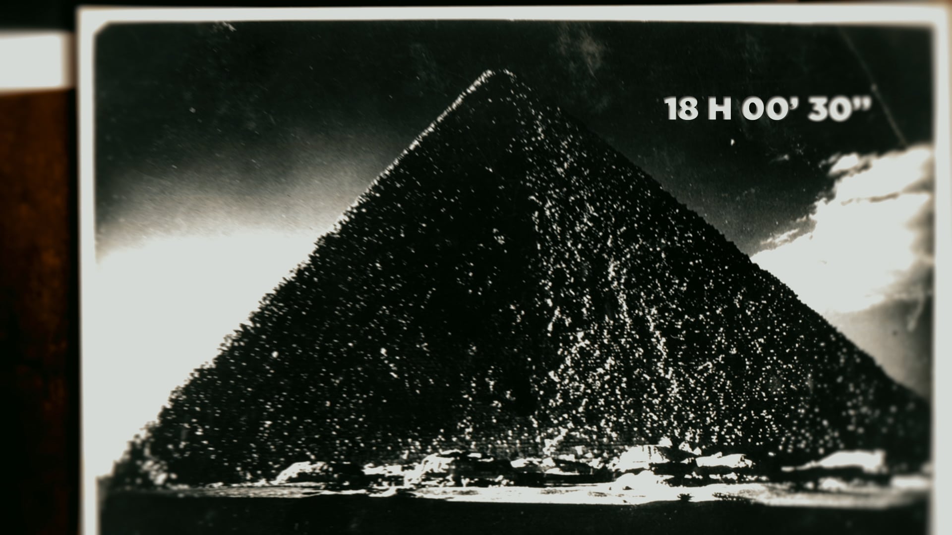 André Pochan ira à son tour photographier le phénomène le 21 mars 1934, à l’aide d’appareils à infrarouge, technologie de pointe à l’époque prêtée par l’armée – apparemment pas dérangée par l’idée de photographier les pyramides avec ce type de matériel très coûteux – pour tenter de comprendre les différences de températures de la face sud, montrées ici sur ces 3 photos prises à 15 secondes d’intervalle, au moment précis de l’équinoxe de Printemps.